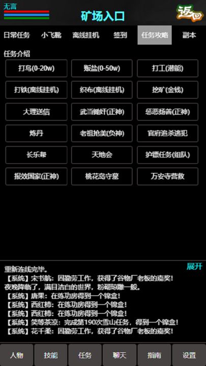 开发者的话江湖道将曾经风靡网络的书剑mud进行了大量的优化和完善,在移动端给大家带来全新的体验。 你是否还记得大理王府送信任务?雪山抢美?华山惩恶扬善?武当锄奸?颂摩崖对抗一品堂武士? 这些任务和玩法都已经被充分优化,既保留了原有的mud武侠精髓,又省去了琐的操作,就算是一个mud新手,也可以在手机上轻松玩耍起来。 新增的附近地图和城市地图显示,非常奈斯。 现已经将一个包含技能体系、任务系统、副本系统、装备系统、经脉系统、被动系统、家园建设、帮派建设、人际关系等众多玩法的游戏呈现给大家,希望大家能够喜欢。 本游戏将持续更新!