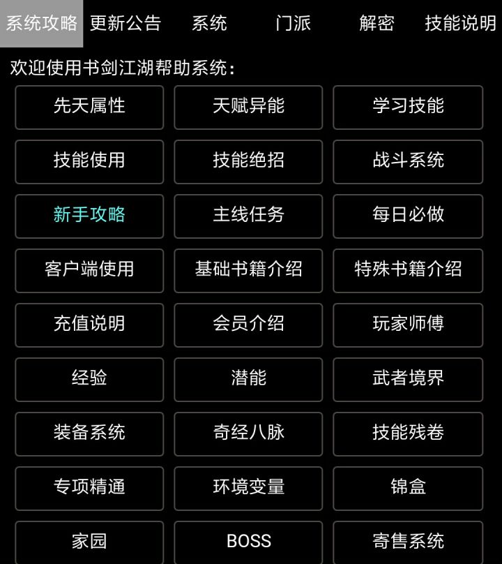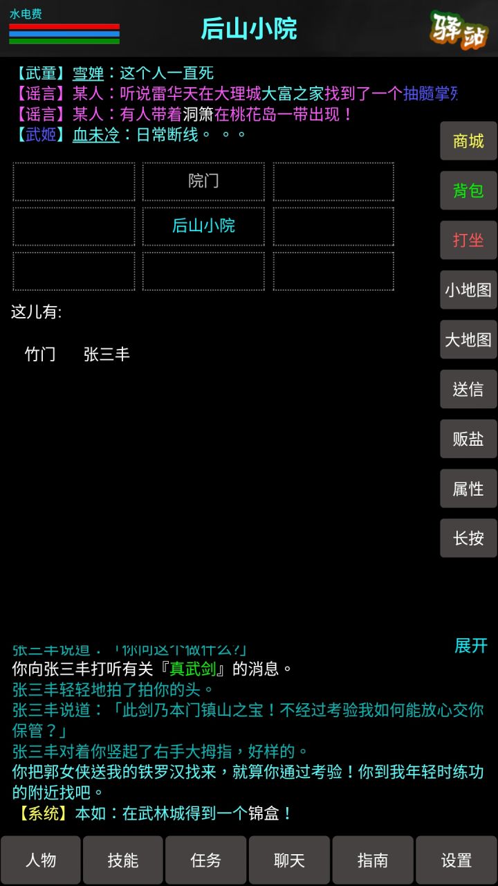呃呃呃....这款游戏,是我在十几款mud类游戏中确定的,虽然刚玩的时候会很迷惑,但等你熟悉了以后,你才能发现,这个游戏有多么的激情,游戏里面自带指南,不氪金也能玩的起来,有很多问题都会给你指出来,在解密当中,还标注了特别多的特殊武功的获取方法(就在解密里面)而且游戏很耐玩,有很多隐藏的地点值得探索,还有许多隐藏的任务点,门派也有很多game当中是推荐男|慕容 女|古墓,但我个人推荐华山派,华