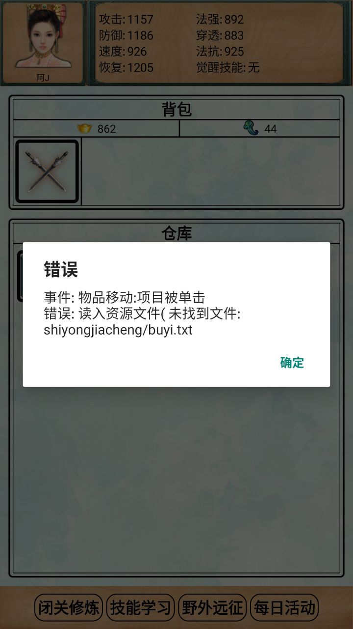 我就不懂了,装备装不了,技能学不了,点了就出现错误,这是游戏?我就无语了……………………