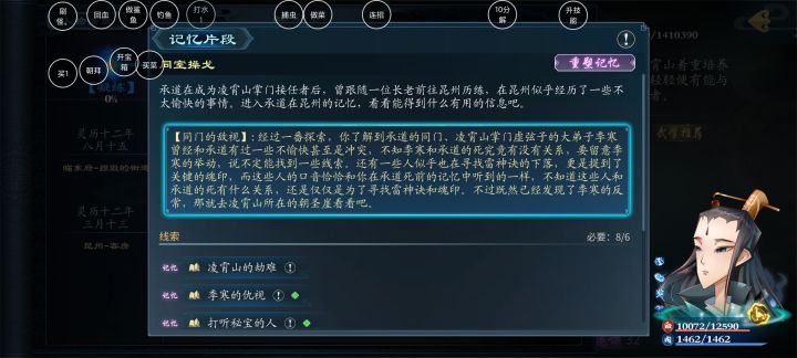 ②门派币,建议查看技能搭配攻略后,合理购买前置技能,避免资源浪费,平民建议优先培养沈邑尘+不语