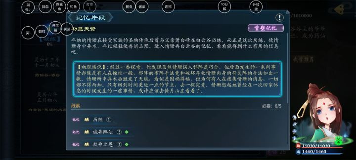②角色等级,二段记忆解锁25级上限,角色25级前尽快开启二段记忆融合,避免修为浪费,修为通过任务/修为丹/刷怪获取