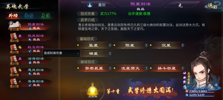 6.小沈外功学陨星,内功学九冥,身法随意(明目步都行,小沈命中率太感人),送的精力丹和精力前期全去刷青云剑宗三层,最好40级之前把陨星和九冥全部刷满,不然容易卡主线。
