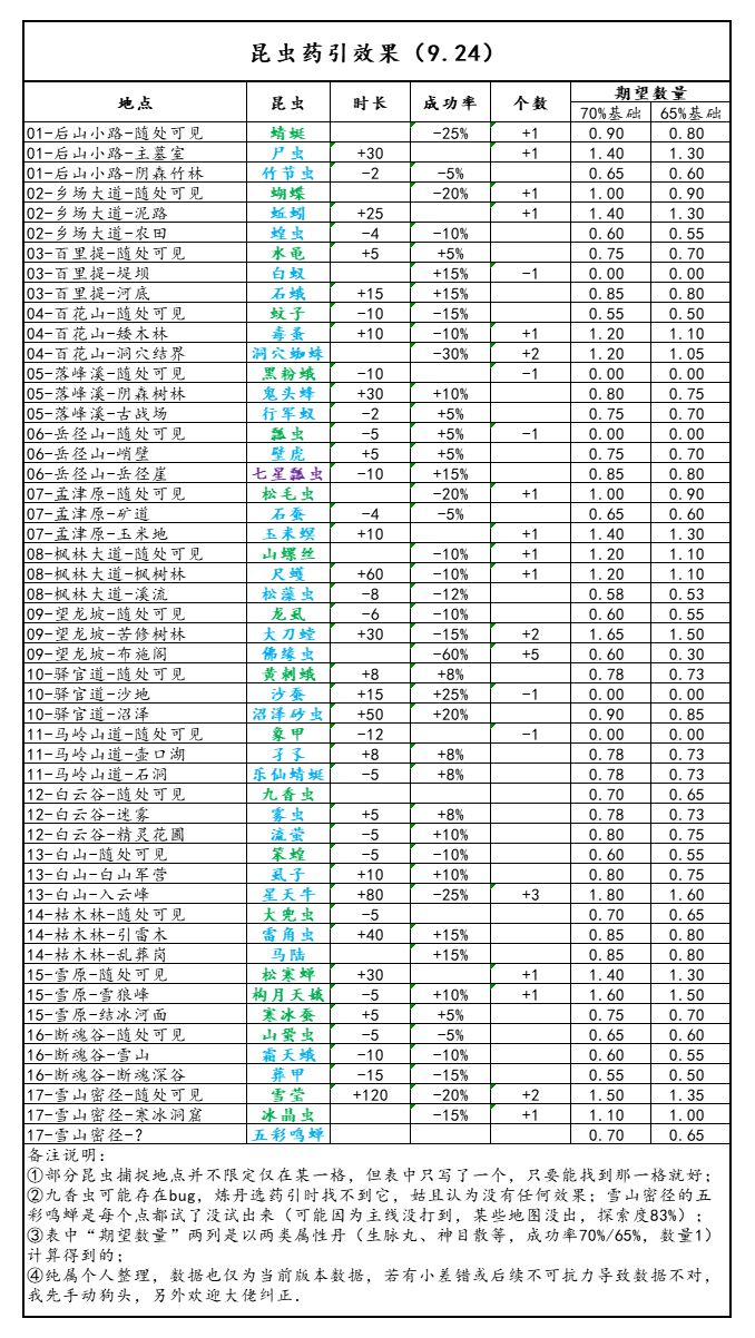 ps,变异鱼蛋太丑就没写,岳径山的毒蚤、参精没看到有人爆过,先移除了