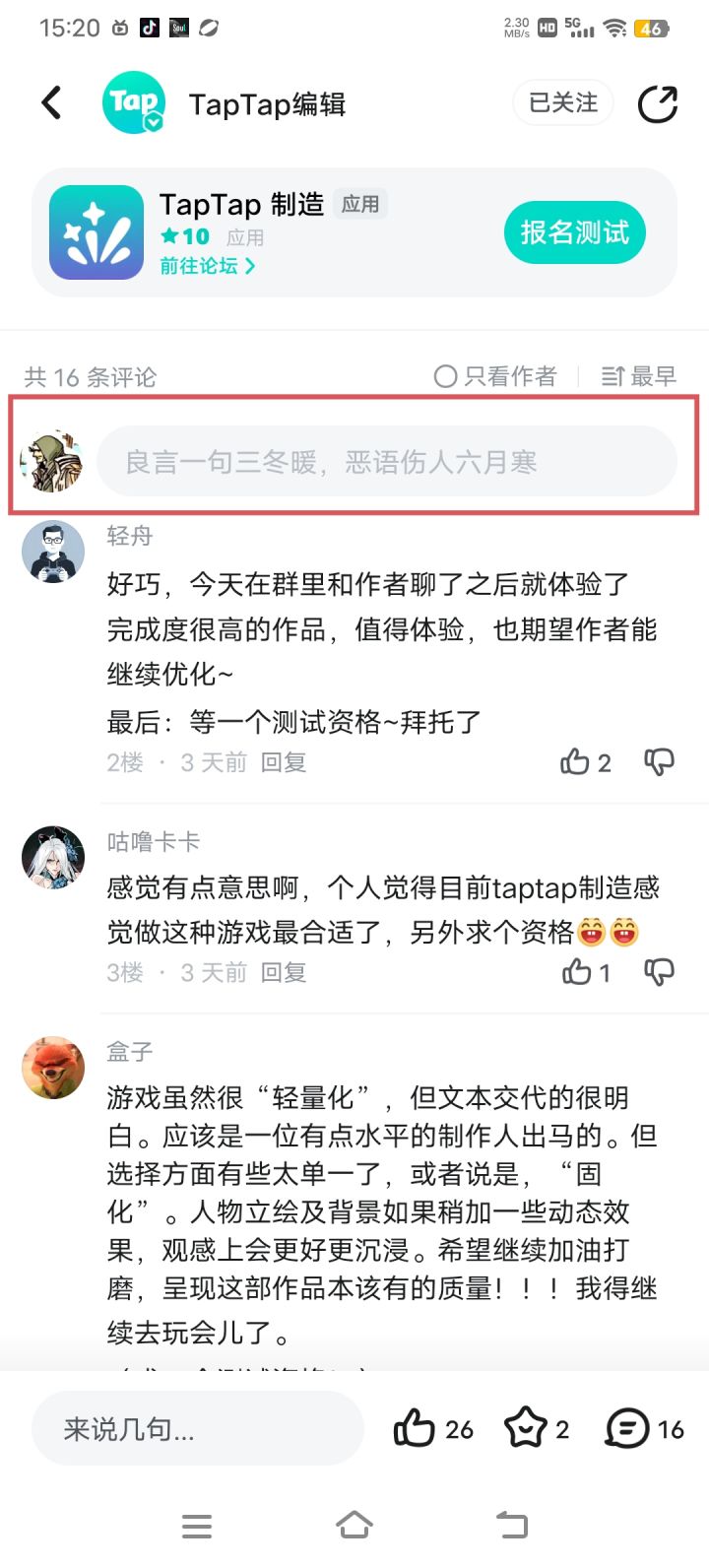 《TapTap制造》要变天?一网友竟深夜被..