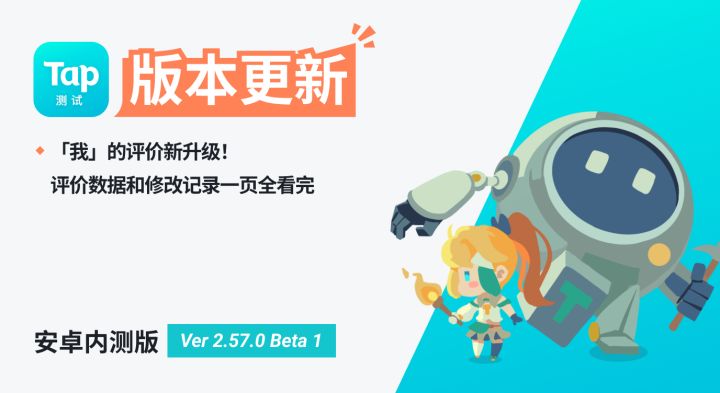 Hello,各位 Tapper :我们今天发布 TapTap Android 内测版 Ver 2.57.0 Beta 1,一起来看看本次版本的更新内容吧~◆ 查看自己的评价我们在评价历史里增加了评价数据的显示、评价和评分的变动记录。Tapper 可以从游戏详情页的评价列表的 悬浮球 进入,也可以从自己的评价页点击 评价历史 进入。◆ 查看他人的评价以上是本次更新的 全(bu)部(fen)