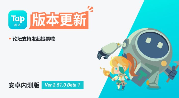 Hello,各位 Tapper :我们今天发布 TapTap Android 内测版 Ver 2.51.0 Beta 1,一起来看看本次版本的更新内容吧~◆ 发帖支持添加投票投票功能还在内测中,欢迎大家体验并反馈~#版本更新#更新公告