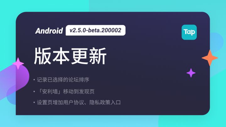 TapTap Android 测试版 v2.5.0-beta. 200002更新公告