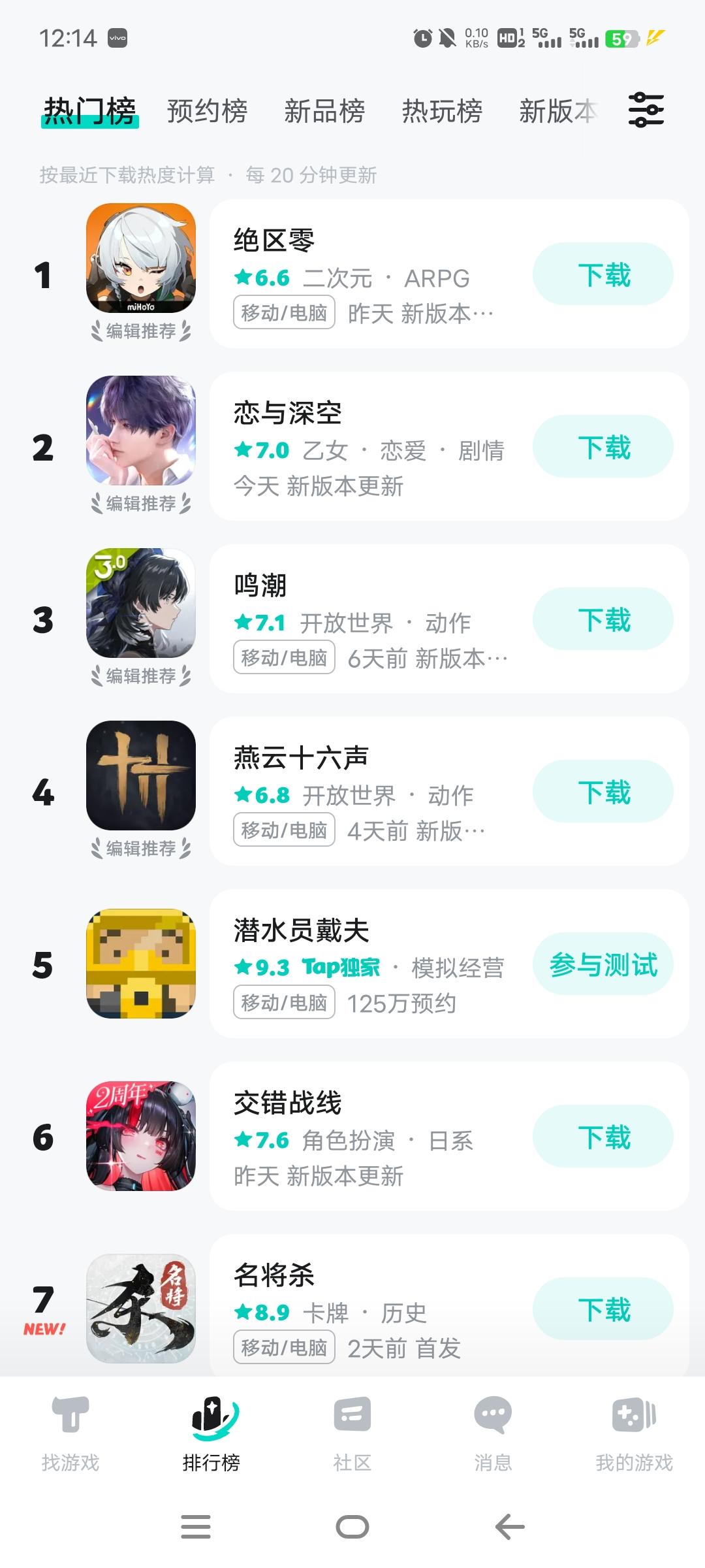 建议从tap打开游戏进行记录热度榜,完全找不到好游戏,排行过于混乱