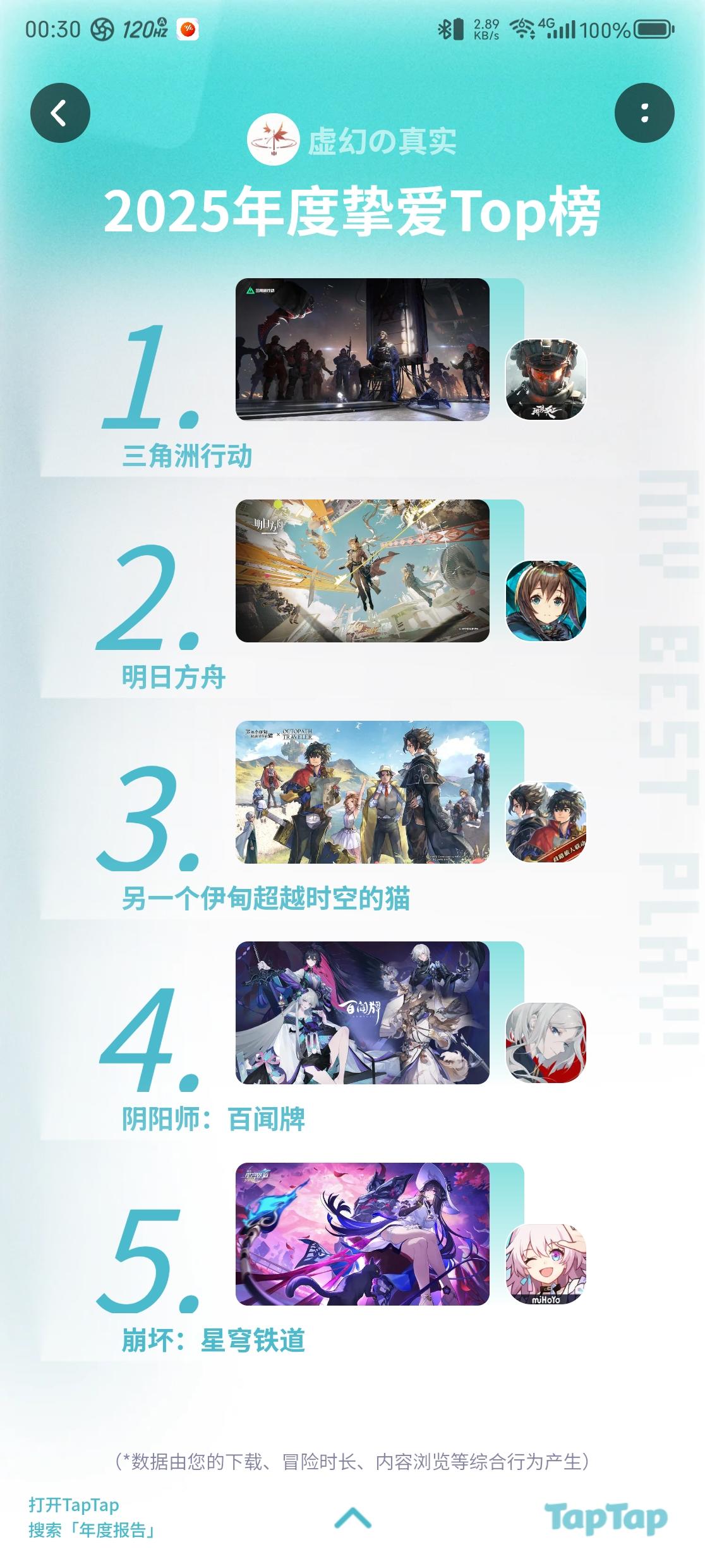 ✨ 点击解锁你的专属游戏报告「」致又相伴一年的 Tapper:当你在探索宝藏新作时,我们记下了你的期待;当你挑战关卡、突破自我时,我们见证了你的成就;当你认真写下评价、分享感想时,我们收藏了你的心声。又是一年,你的专属「2025TapTap年度游戏报告」已加载完毕!这不仅是一份报告,更是属于你的冒险存档——记录过去这一年,你作为玩家、作为探索者、作为同行人,那些闪闪发光的冒险