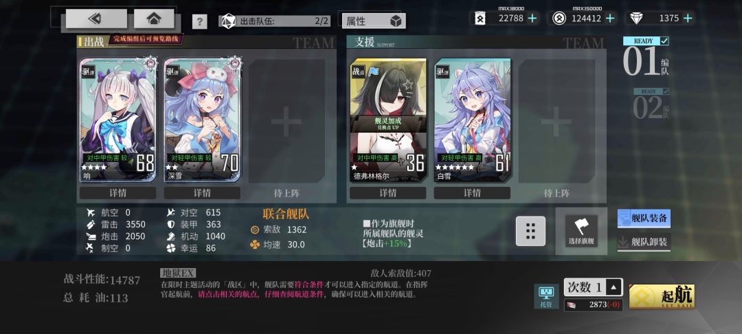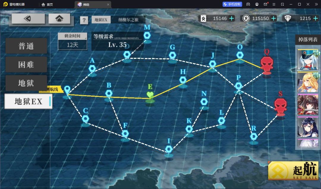 两条路线都是6站过油点,离线刷代币捞船都挺方便。 需要托管之前凹一下路线就可以放心离线委托,方便懒人不变阵。 出战顺序随意,最好让双航母那一队去油点前的G和O吃油点,给重巡和航母旗舰。 重巡可以用昆西代替,航母用姨太企业大黄蜂都行,可以替换的船很多,注意控制航速。 明尼和企业35级开活动加成就可以打了,对练度要求不高,需要注意有的关卡有自爆船,后排练度不能太低。 捞赤城的话二队多上两个船