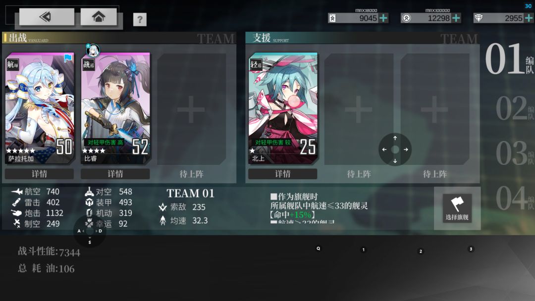 一,左路四战捞德芙(十船,蒙洛瑞亚旗舰,战巡战列重炮少于3) 油耗一轮452 二队航母装母凑条件 一队四小船直接打完四战(德芙是我带着练的,实际捞船不给旗舰或者换另一个老板) 需安铂铁剂 注意叠防空,最好前排都是七槽 低级战巡不叠防空扛不住的(如图1-1) 二,左路四战捞伊丽莎白(蒙洛瑞亚旗舰,十船,战勋战列重炮大于等于3) 调二队就行了,一队都是通用的 注意了因为是航战,所以命中比装母高。 要凹
