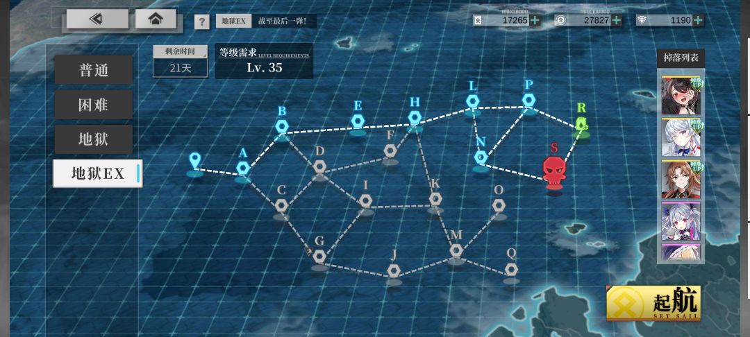 吐槽向,先说结论:如果无法保证地狱ex四战全S,直接地狱练级即可。 因地狱后排船几乎无硬度要求,且返油点不像ex有突然的难度提升,后排可上一星驱逐或轻巡,前排也不需要满星船,油耗有压缩余地。 结果就是地狱练船还能多打若干轮次,四战收益与ex几乎没什么差距。 11.21修改:地狱难度中央岛已移除,其它问题有待观察。 另外本次活动地图和托管系统存在一些bug或不可控的高血压因素。包括边缘吞支援技、托管
