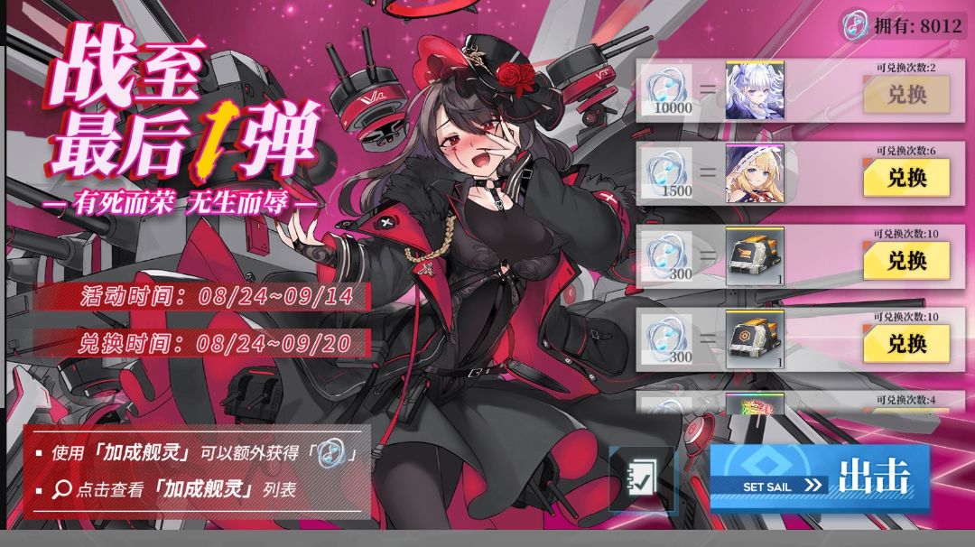 海域攻略 活动兑换的优先度参考排名 1. 追击方舟x1 2. 石油/奈亚x3 3. 追击方舟换装 4. 黑猫 5. 装备材料(蓝绿色) 6. 紫炮(不缺可以往后) 7. 俾斯麦欧根 8. 追击方舟x5 9. 金币 10. 技能材料 注: 4,5,6,7并列,按照自己需求兑换 俾斯麦和欧根没有的可以提前到3之前 简单难度: A 旗舰驱逐-B 旗舰不为驱逐-C B 无条件-D C 旗舰战列-E 旗舰不