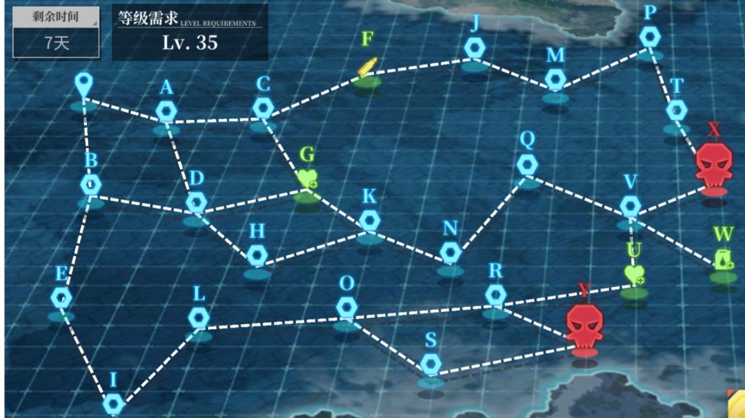 印象里这是第一个闪回活动,考虑到老登大多已捞满当期两舰因此这里只做低配攻略。 新泽西号作为数值可观的高爆战列在主线18章、遭遇战里均有优秀表现,对无前卫或前卫已满的新人来说是不错的18章带练对策卡。南达科他号关联羁绊,升星奖励可观,有余力再追满星。 推荐在开完图鉴后优先捞满新泽西。 先看怪物分布: 看似大部分点位都有防空压力,实则暗藏玄机。这里直接给出捞新泽西的线路。 北线道中完全不会遇到航母怪,