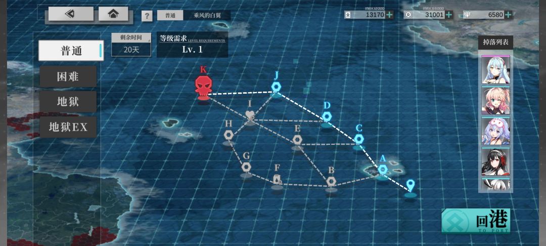 普通任意队伍首通后开始开全图 ABFGHI A点沟b条件舰灵小于等于3 B点沟f航母小于等于1 推荐阵容任意三驱逐 ABEI B点沟e航母大于等于2 一驱逐两航母 任意队伍首通开全图 AFIJ A点带路条件驱逐大于等于4 F点沟I舰队索敌低于350 I点沟J舰队索敌小于等于200 推荐队伍任意四驱逐索敌低于200 AFIK I点沟K舰队索敌大于等于300 推荐队伍任意四驱逐带任意船凑索敌高于300