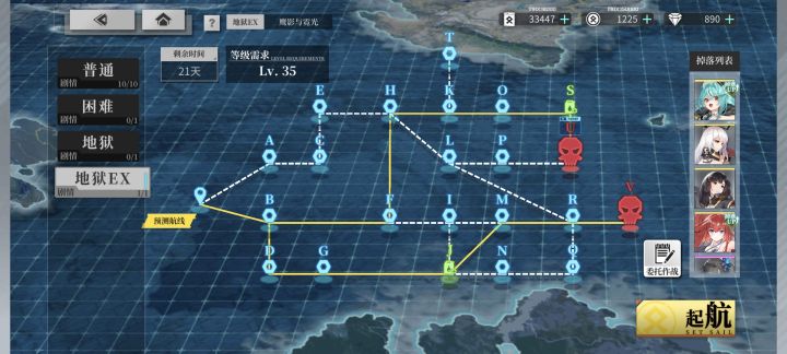 两条路线都是6站过油点,离线刷代币捞船都挺方便。 需要托管之前凹一下路线就可以放心离线委托,方便懒人不变阵。 出战顺序随意,最好让双航母那一队去油点前的G和O吃油点,给重巡和航母旗舰。 重巡可以用昆西代替,航母用姨太企业大黄蜂都行,可以替换的船很多,注意控制航速。 明尼和企业35级开活动加成就可以打了,对练度要求不高,需要注意有的关卡有自爆船,后排练度不能太低。 捞赤城的话二队多上两个船