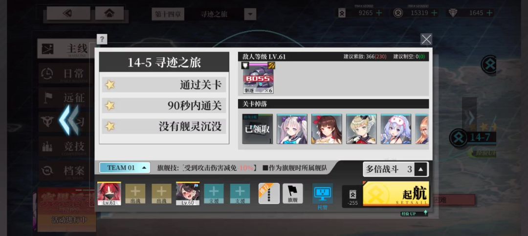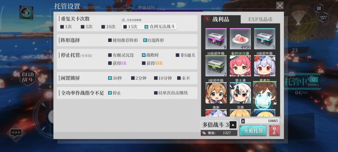 活动结束忘记留战列素材,等维内托改造才想起要重新强化,被迫从18-7抽身。 刚好最近送了三型箱,又能再开一门305炮......于是就有了这么一个视频。 考虑到雪风本来也很难三星主线,基本只能打活动(697经验);最近也没有生存压力大到非雪风不可的关卡;活动沉迷于练各种蓝绿船,索性让她去主线玩玩吧。二星18-10,870经验还有返油也凑合。 配置仅供参考,由于是1+0,完全解放后排,如羁绊或装备等