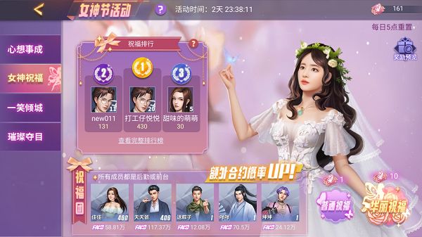 各位老板, 女神节近在眼前,小秘书听说这次又有一名“神仙姐姐”来到我们的美食世界噢!女神节活动期间各位老板每日完成女神指定任务即可获得女神凭证,使用凭证给予女神祝福即可获得女神的回馈噢,限定称号“优雅仙女”、“神仙姐姐”合约等你来拿!每日组成符合条件的女神祝福团,更可以提高获取合约概率噢!本次女神节活动也将首次开启中餐厅兑换活动“一笑倾城”,收集神仙姐姐制定的道具即可兑换超稀有奖励,珍馐菜谱自选