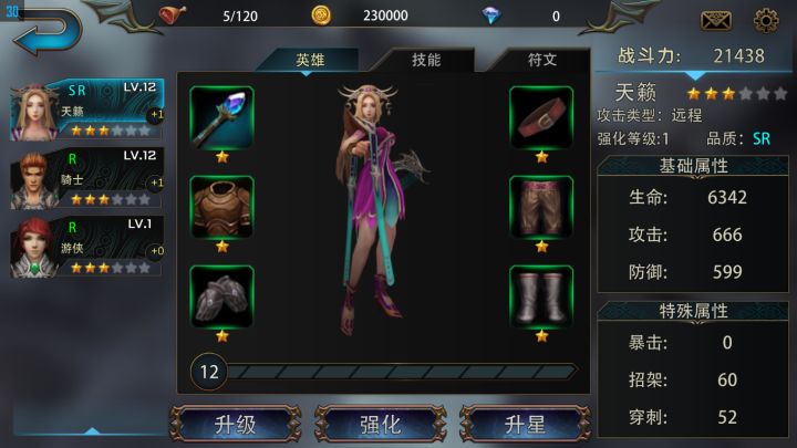 1-8,先感慨一句SR就是强,游侠加牧师两个人都打不过的关卡他一个人都可以三星。。然后bug来了,怪消灭完了,左上计数却还有一个,游戏时间不减,也没法退出,右上的暂停键按了也没反应,只能强制退出程序,然后重新进入,这一把白打。。
