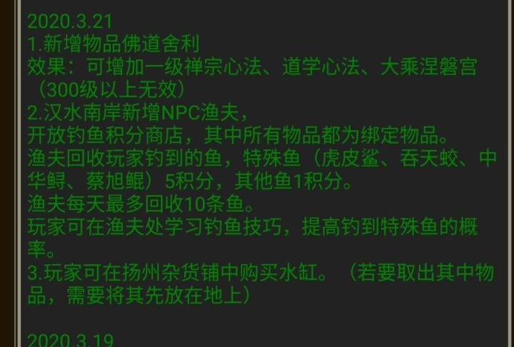 你还在为论语烦恼吗?你还在为小还丹烦恼吗?那你还在等什么,拿上一根鱼竿,一些鱼饵就能发家致富首先我们飞到长安,点附近,找到杂货铺在杂货铺里买好鱼竿和鱼饵然后飞往扬州,一直向北走,来到汉水南岸可以学习一点钓鱼技巧,也可以选择不学点钓鱼再点左下方的钓鱼然后就可以开始挂机钓鱼了,有钱的同学可以在扬州杂货铺买一个水缸(1000金)然后把钓到的鱼给渔夫就行了(一天只能给十条)