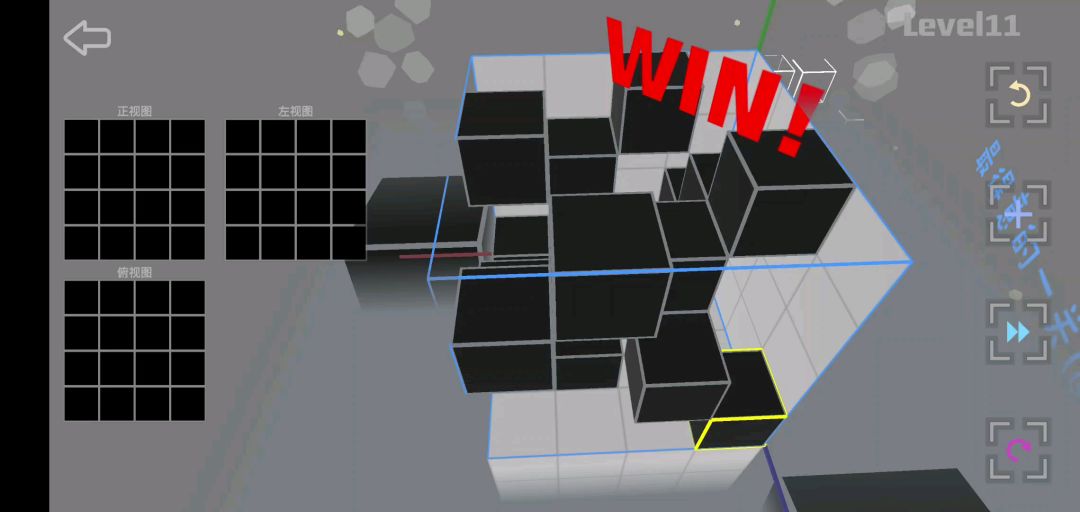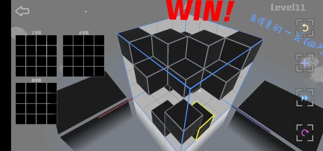 看见很多同学的都比较乱,其实这一关还是蛮好过的,你只要理解到每一层有四个方块,每一个方块都必须露出三个面,随便怎么接都可以过了,只要你后面放下的方块,不要遮住前面放下的方块,每一层的四个方块错开放就可以了。
