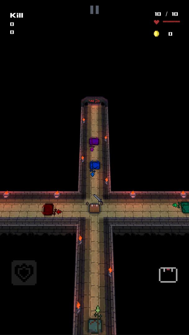 >只有正面面对你的敌人才能生存下去,游戏通过滑动屏幕调整人物面朝方向来击败攻过来的敌人。