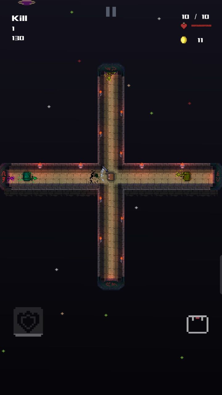 操作方式屏幕上下左右滑动进行改变方向攻击方式小人拿剑的方向可以攻击敌人技能图标位于屏幕左下角击杀满20个可以触发技能,点击使用使用后可以获得5秒无敌商店图标 商店图标位于屏幕右下角商店图标1💗使用10金币获得增加生命上限加2商店图标2🏅使用10金币让金币增加爆率,击杀敌人可以获得金币商店图标2💓🗡可以让你击杀敌人的时候回血,使用10金币增加回血概率商店图标4👉,击杀敌人的时候有