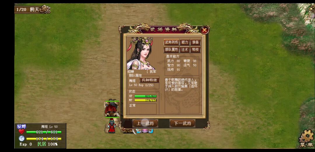 第一关: 黄巾讨伐战 带宝武将:张宝 备注: 1.进入张宝部队前三格位置,其便会出击,(噩梦级,需进入两格位置)。 2.杀张宝我军HP回满,得到凤凰羽衣。 3.杀张梁和张宝后,出现选项。 (1)用计(我军立即移至山上)。(2)直接冲杀,回合上限增加10。 1,开局行动顺序:夏侯渊-反击不能,夏侯惇-格挡,曹操-叫杀,可以无伤结束第一回合。 2,初期人少,面对大批敌军,只能利用反击快速消灭敌军。布阵