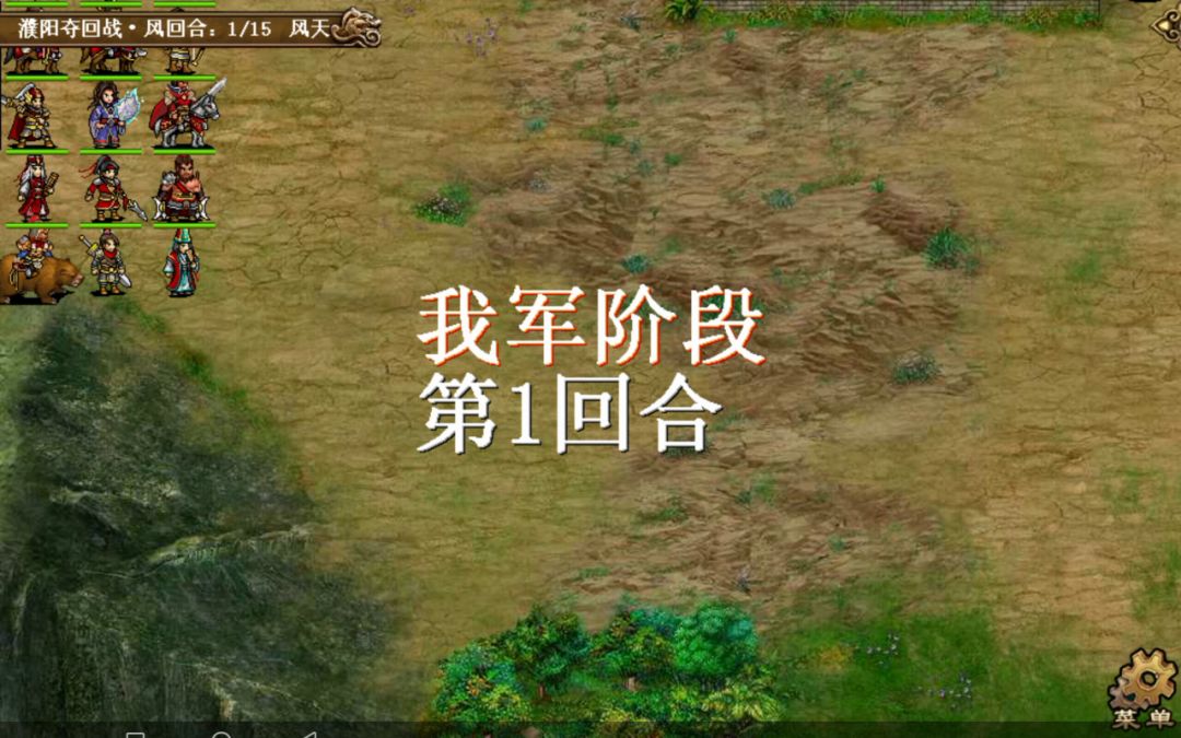 选择请关二爷出战,关羽作为不受控友军登场。 东北桥头由青龙刀龙鳞甲赤兔关二爷挡住。如果在关羽移动范围内有能叫杀敌军和颜良时,关羽会锁定颜良,攻击敌将,当颜良不在移动后攻击范围内,或者范围内没有能叫杀的敌军,关羽攻击能杀伤最大的目标。利用好这点,就可以控制关羽的走位。 正北桥头由李典挡住,把文官、弓步和弓骑带过去,李典疯狂切菜。 西北桥头由狼牙棒赤影甲鬼谷子夏侯惇反击。 正西桥头由夏侯渊挡住,反击骑兵和刀枪兵。 鹰眼飞龙的卢马典韦从山上打到山下,高爆发力全程大概率双击反击收割。鹰眼打5格移动力的山贼特别给力,加伤达到54%,的卢马减对方10%地形相当于弥补鹰眼面板不足。 张辽抗日月刀,利用独谋技能,放单体法术,收益比风阵大,敌军医生没有了觉醒技能,一回合一个输送,白费一个风阵! 34级白马,最后勉强36级收关。