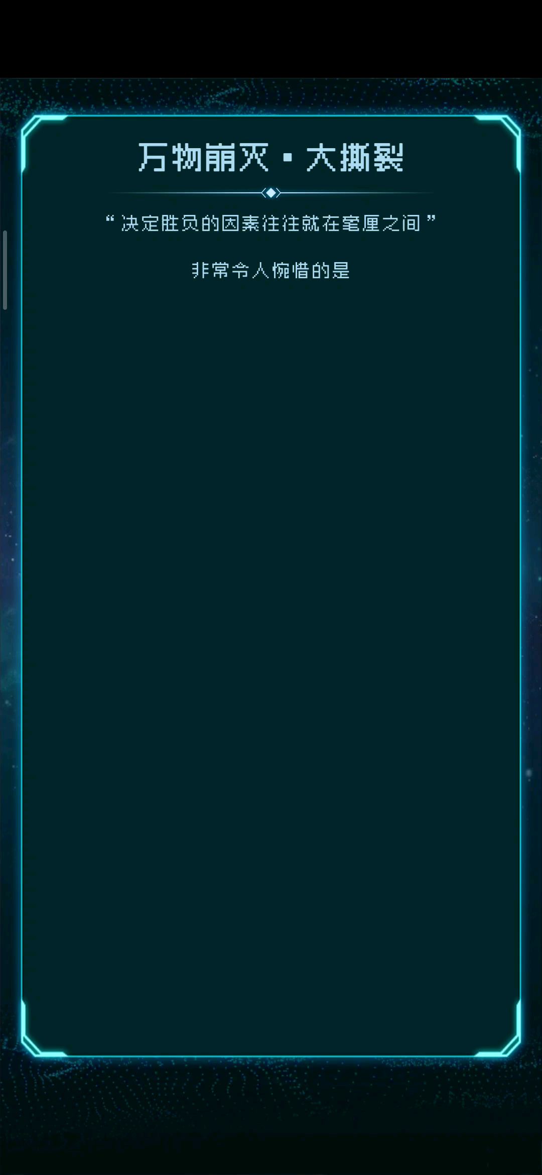 领航员:抱歉,我已尽力,冲击宇宙所需的能量我们依然不足,或许我不应该对所有文明这么仁慈,我们将面对更加困难的敌人,对方的科技可能在我们之上,但为了蓝星的六兆同胞,我们不能放弃。逐光,狼青,深红,你们准备好了吗? 逐光:祝领航员畅通无阻 ..