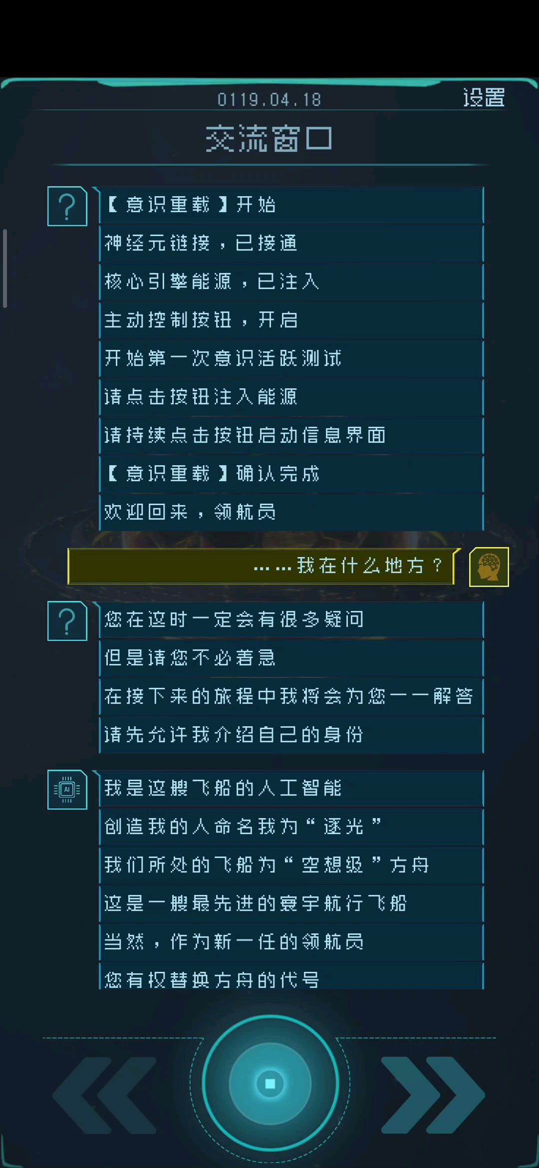 这是我作为一名萌新所玩的体验: 整款游戏的感觉还是不错的,老是说我就是来看“交流窗口”的,本人属于科幻迷,所以对于当中的概念都能理解