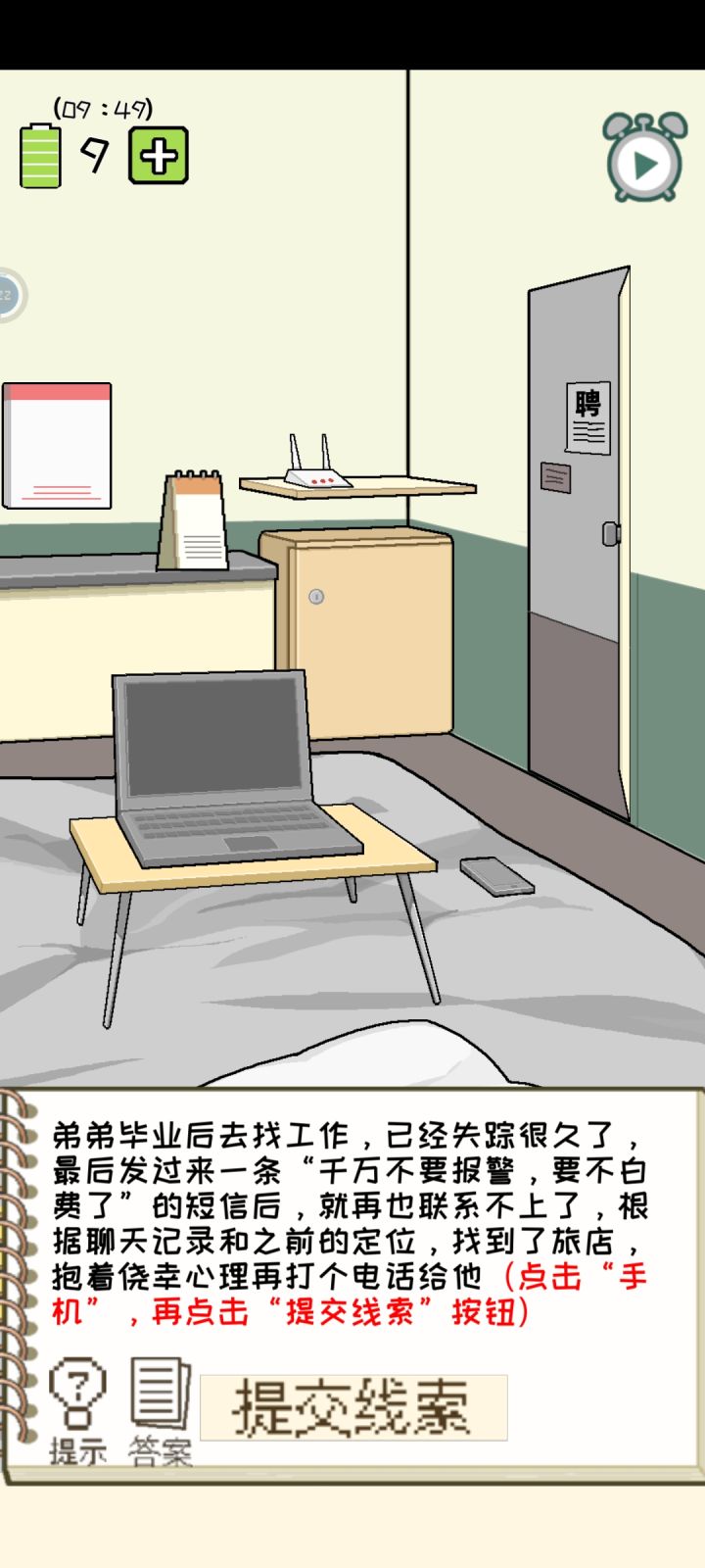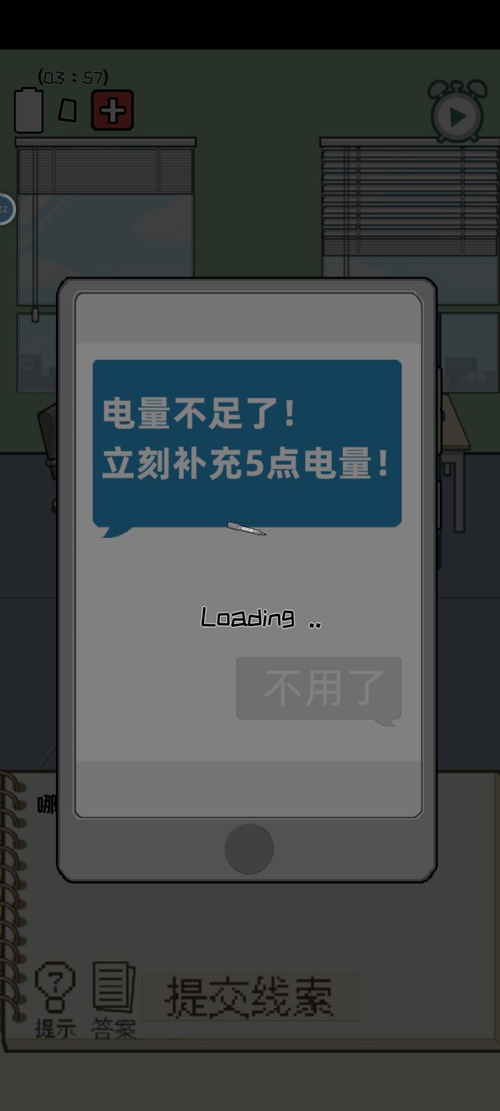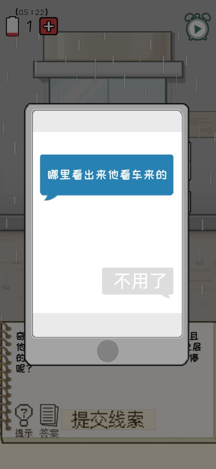 譬如第一章状态栏那一题,看题目和提示都可以猜到是状态栏,问题就在于哪怕我看完广告得到了答案也不清楚具体要提交什么线索。对于这种一个提示有很多线索可以选择的关卡,可不可以附上图片呀