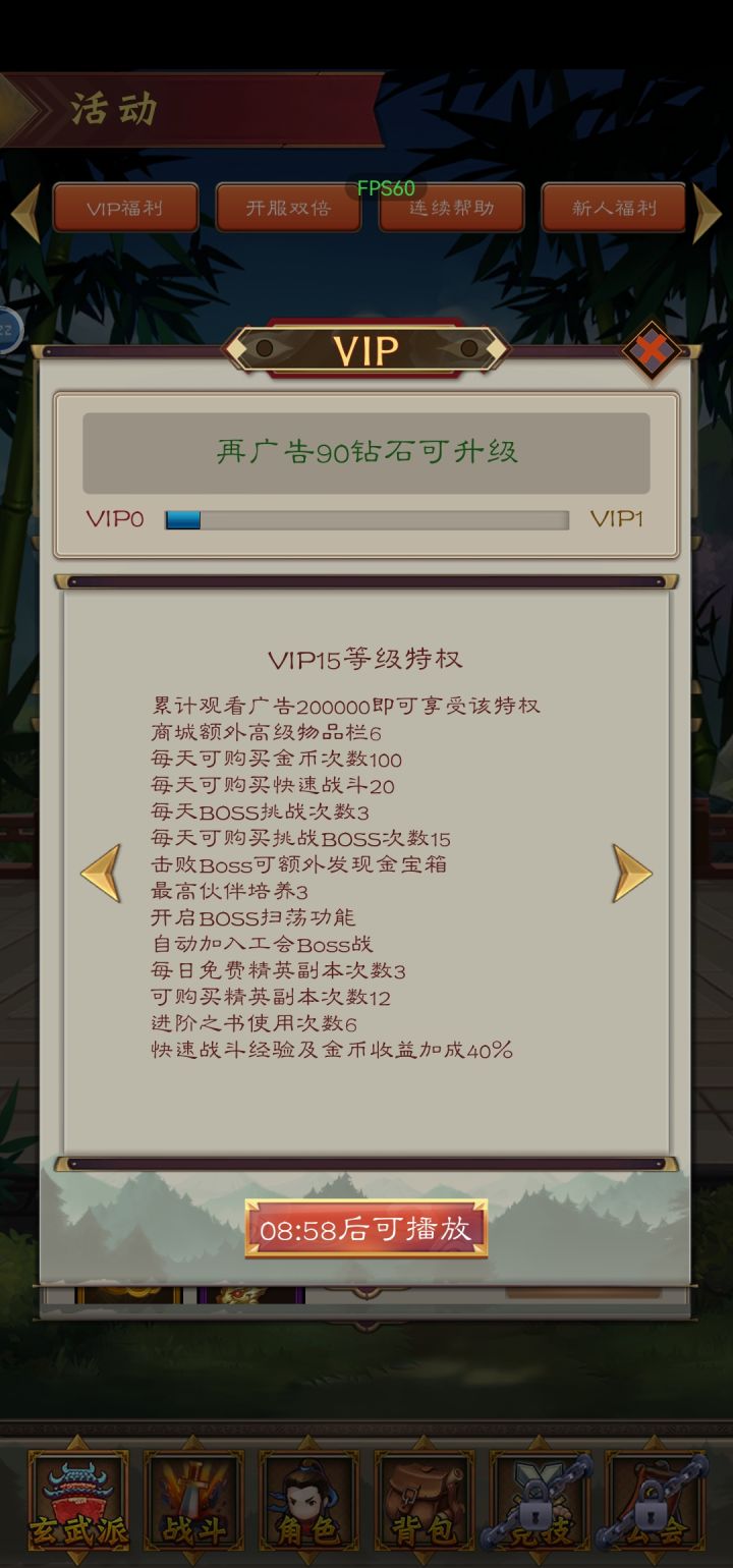 10分钟看一个广告,一个广告给5钻石v15得看40000次,算你一天看30个,得看5年一个放置游戏