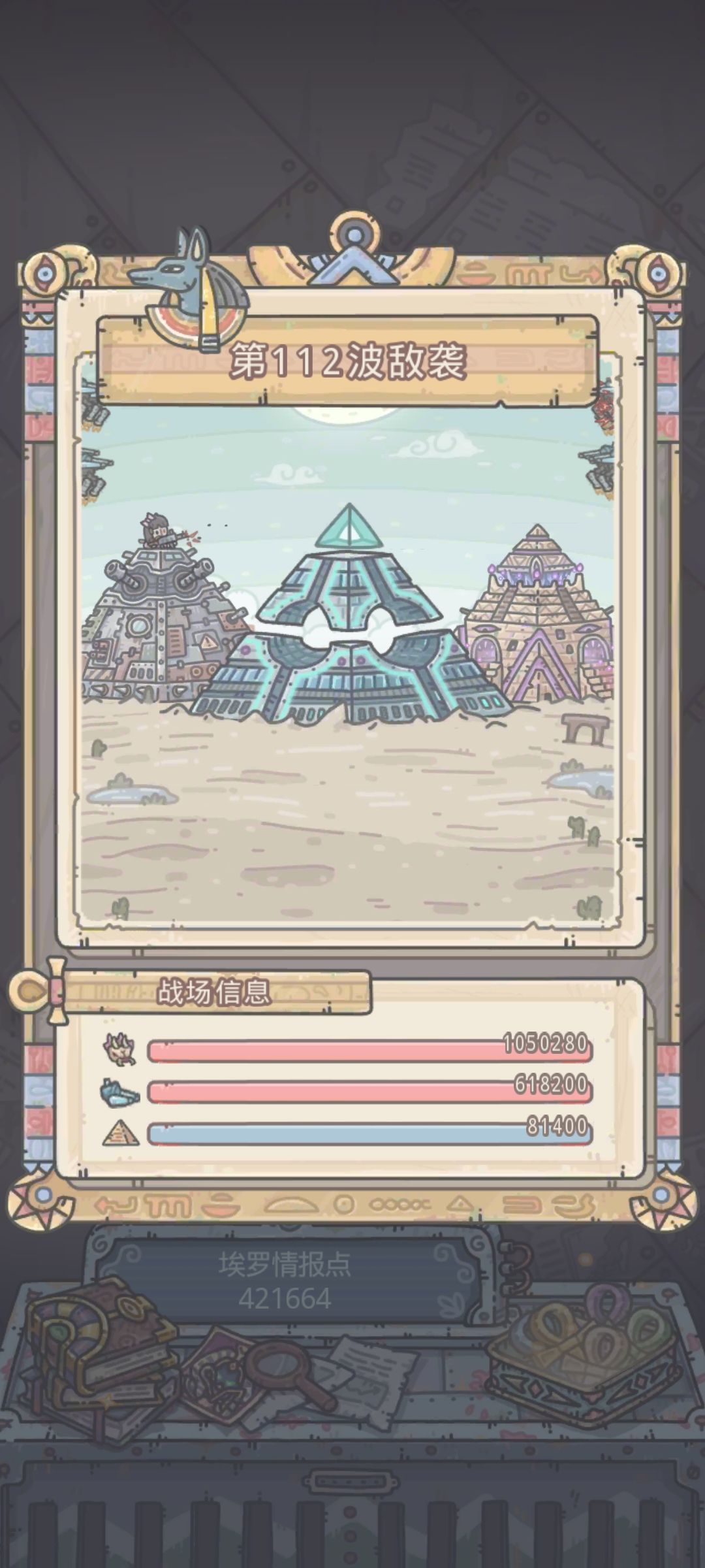 拿我在打的举例 如图 金字塔 总共能装四个配件 其中能量 魔法 物理 对空 每次里面一般能有三个能上场 比如我这关 能量无法使用 就用的 魔法 物理 对空 然后点进去看阵容 沙虫和钢铁 钢铁是能飞的 所以第四个配件就用杀虫剂 因为钢铁已经被对空又额外增伤了 同理 如果两个都不能飞 那么魔法 物理 能量肯定都能上的 对空就没用了 那第四个配件就点进去看阵容 哪个数量多就针对哪个 比如点进去看 虫子2