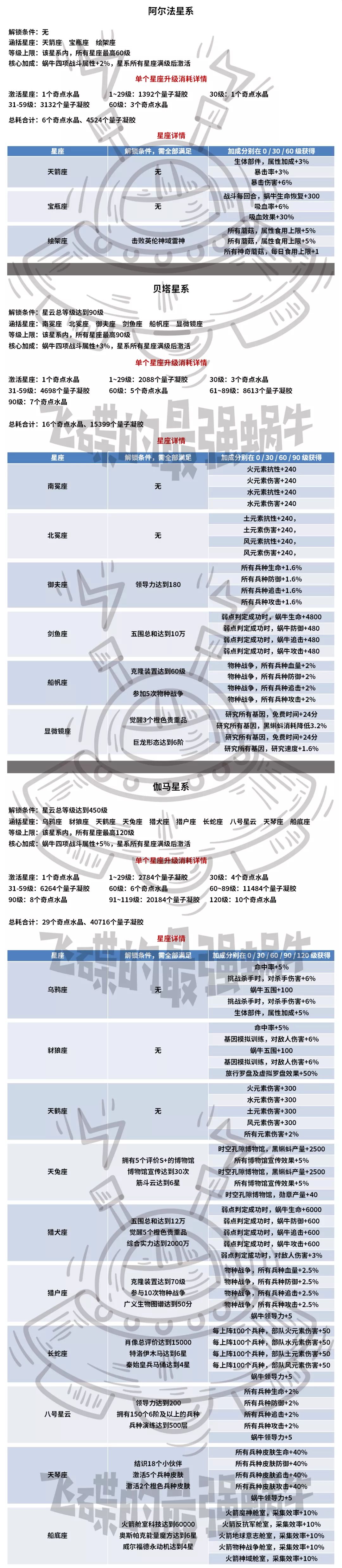 大家好~俺是胖大海 明天星云系统就会新增量子增幅器功能,今天给大家带来星云系统的相关攻略! 本文出自UFO攻略组,有需要的小伙伴可细品! 更多攻略请关注微信公众号:飞碟的最强蜗牛 话不多说~开启攻略模式! 『星云系统』 星云系统目前共有3个功能,星座系统、量子增幅器、星域探索。星域探索暂未实装,实装后会尽快安排。 『星座系统』 目前仅开放了3个星系,但受到星座等级的限制,目前最多也仅仅能解锁前两个
