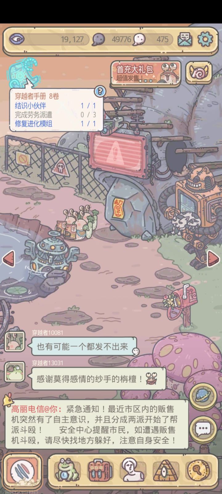 亲爱的蜗爷:我是你们第一喜欢的白蝌蚪!今天为大家带来本周的更新公告本次更新,开放『筑梦安生』联动公益活动、物种战争里世界;新增跨次元加入俱乐部功能、物种战争研究所新分页,以及源兽神格Ⅷ阶仪式;调整了穿越者商会商品价格;优化了游戏内部分界面显示、红点提示规则,以及文案与美术资源;修复了物种战争相关问题、魔神数据库界面无响应、基因模拟训练异常扣血,以及欧气测试可重复获取逆模因的问题。穿越者联盟