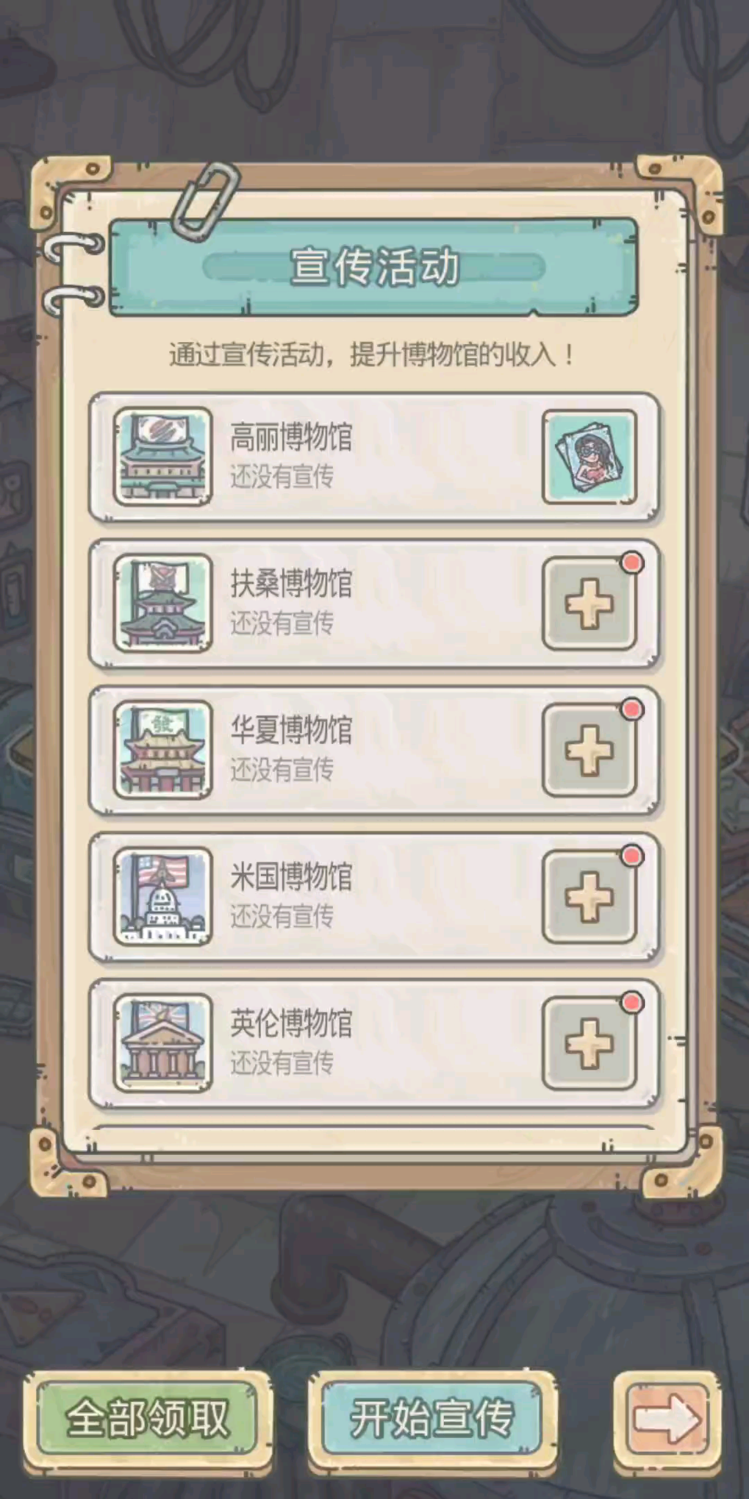 博物馆宣传,高丽必须橙宣,点入高丽变成华夏,也就是想宣传华夏,必须多花280宣传收益极低的高丽。
