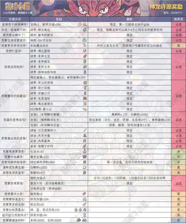 献祭加速(越多越好)、神赐秩序、中立、混沌宝箱各5个、神龙宝箱1个。