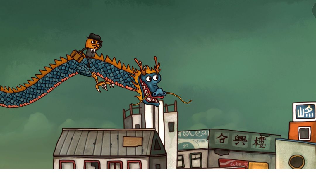 哇,真的是龙龙驮着南瓜先生飞走了!