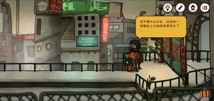 第三章:城北进入北城一巷,来到场景,与小男孩对话发现其飞机被卡在电线上,注意观察,还有一把我们需要的钥匙也在上面,推测需要帮小男孩拿下飞机才能顺便取得钥匙。进入发廊,发现豹哥也在此,与发廊女对话得知她想离开这里,也许我们需要找到一张船票/车票来帮助她(推测)。捡起右下角桌子上的铅笔。走出这个发廊,来到奶奶家。与奶奶对话得知他的儿子搭船出去已经好久没有回来了,而老奶奶因为担心儿子一直失眠。每晚