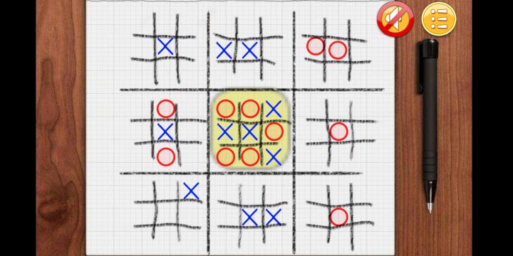 这游戏其实挺简单的,只要刷新空白第一步占领中间,9宫格如果你占边上有三条路可以走但容易被堵,举例左上角的话无非往右,下,或者右下走,但如果在中间你可以横向,纵向,和两个斜向四条路可以走,并且由于中间位置不变你只要再下两颗子就能胜利,同一棋盘内最对平局,要么就是你不会,不可能输,但这边是多棋盘,有时候会遇到对方连续三个在同一棋盘内而你不在,不用慌,你随机到的三个不管有没有重复都能很好的发展,多注意一