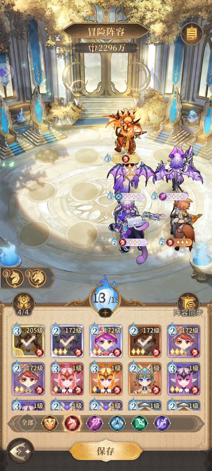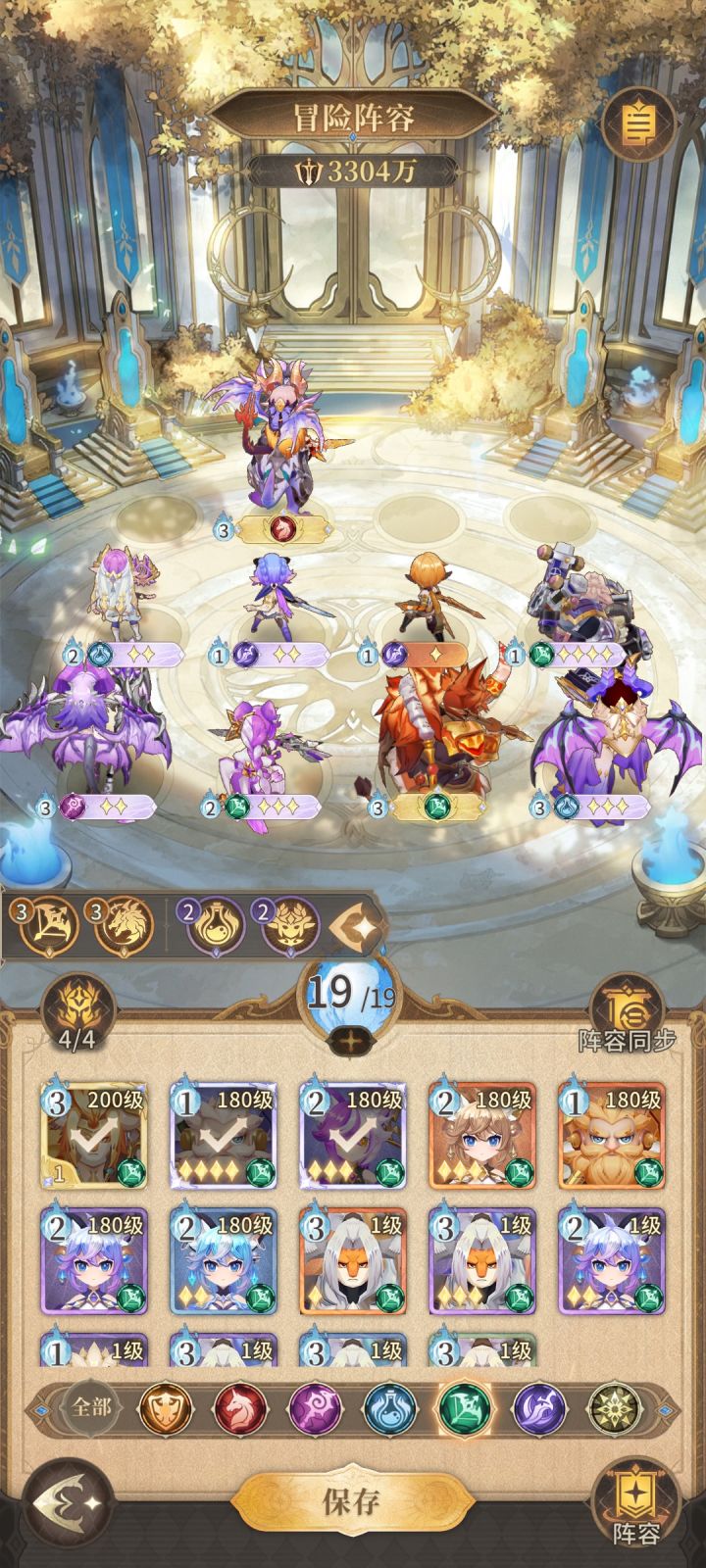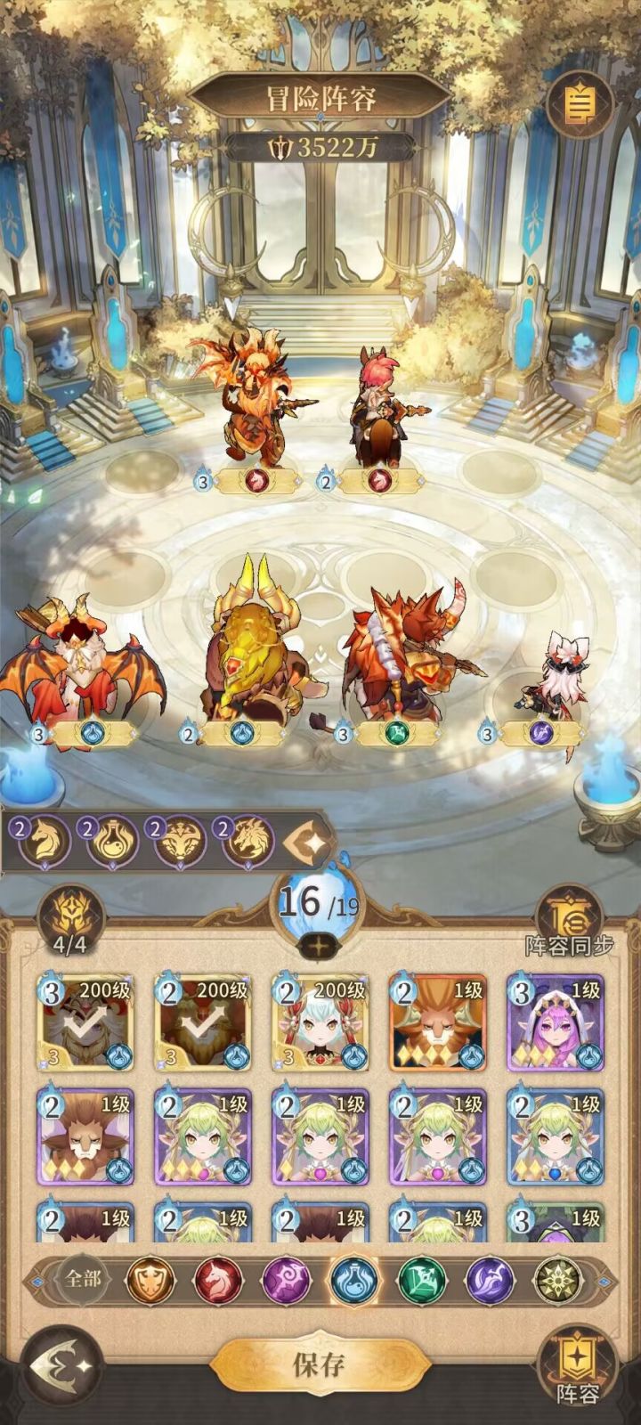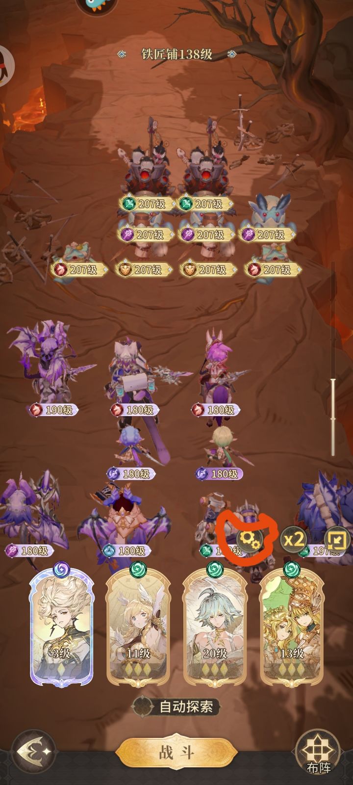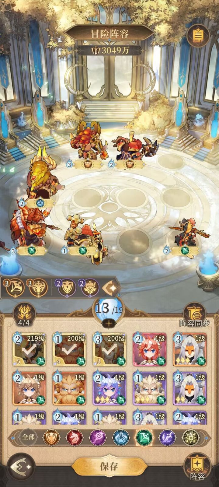 看了一圈一个有用攻略都没有无语死了,自己慢慢摸索的,也有去世界借鉴的,已经非常贫民了,没有啥高练度神,推图硬性要求只有一个就是龙骑一定要顶中顶(这个已经是非常逃课攻略了)然后推图小怪就上p1-p2的土系四个假如你有土三星以上也可以置换,思路就是荆棘反反伤,boos就是p3-p4的模板