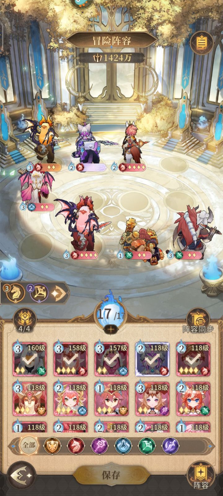 看了一圈一个有用攻略都没有无语死了,自己慢慢摸索的,也有去世界借鉴的,已经非常贫民了,没有啥高练度神,推图硬性要求只有一个就是龙骑一定要顶中顶(这个已经是非常逃课攻略了)然后推图小怪就上p1-p2的土系四个假如你有土三星以上也可以置换,思路就是荆棘反反伤,boos就是p3-p4的模板