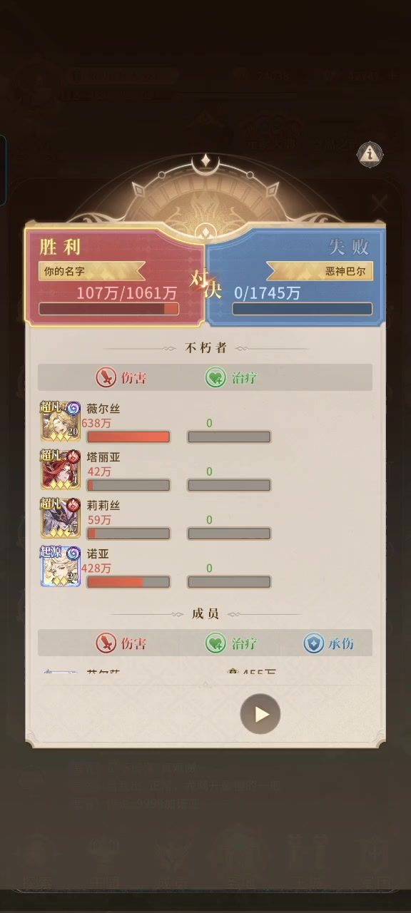 一个蛮有趣的能打水愈的阵容,不过还是仅供参考哈 #不朽家族公测攻略征集