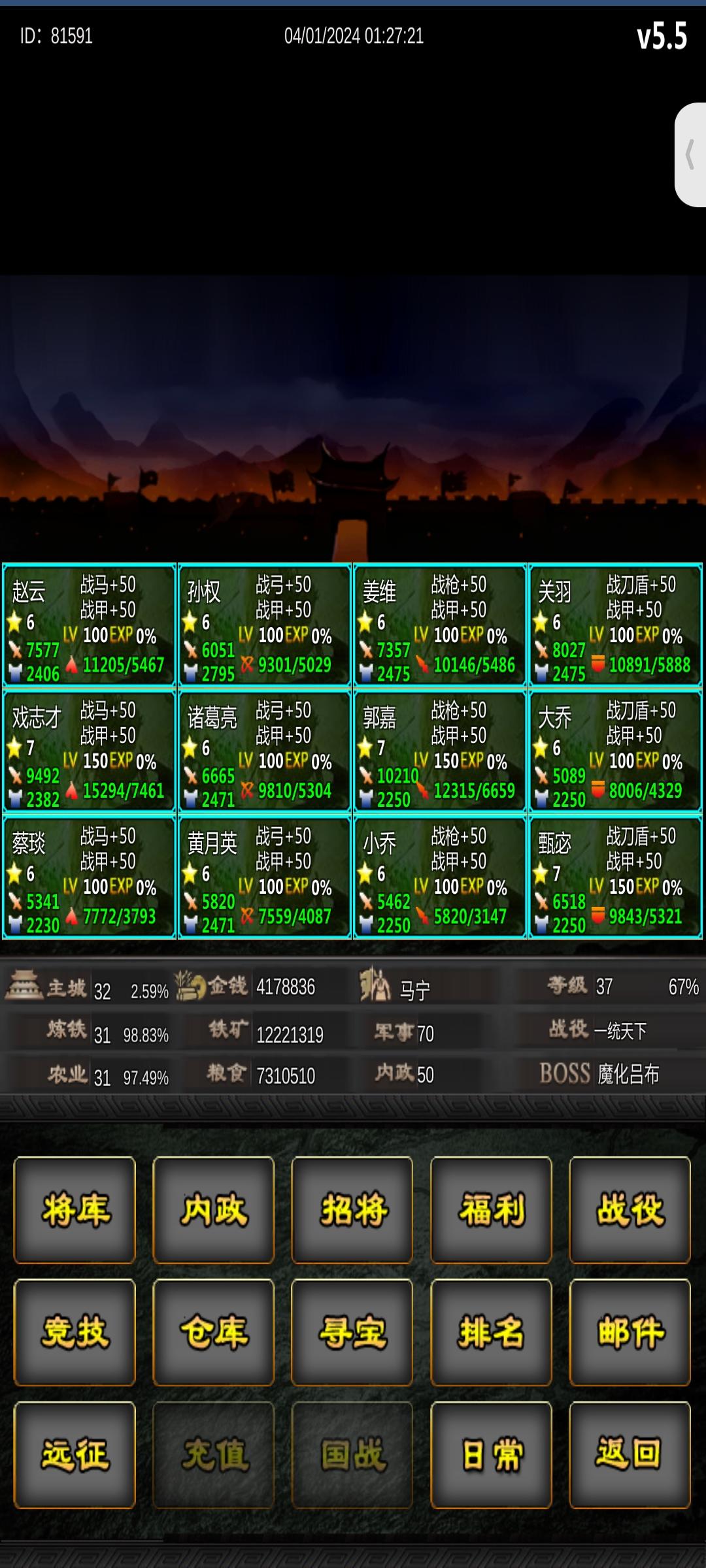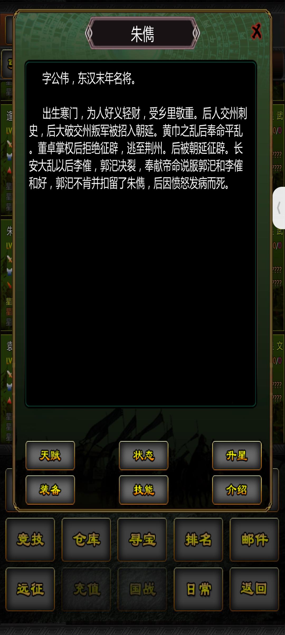 欢迎!新老玩家 QQ群:836245058(一群) QQ群:138204508(二群) 新人引导: 1. 开局刷属性:属性最好是整10个数的,建议军事60内政60这档是最好最平均的不用担心后期制度改版,前期发展快但是中后期不太吃香了军事80 内政40,后期档军事50 内政70寻访吃香,必选将领就选刘备开局。重要提醒:建议开局刷好别想删档这操作,抱歉这游戏没有,不然又要重新注册了 2. 元宝初期就买