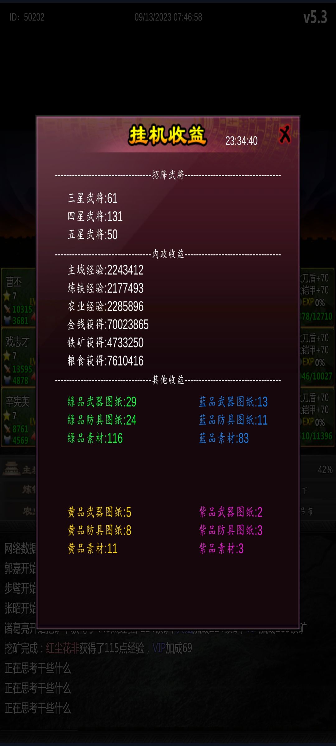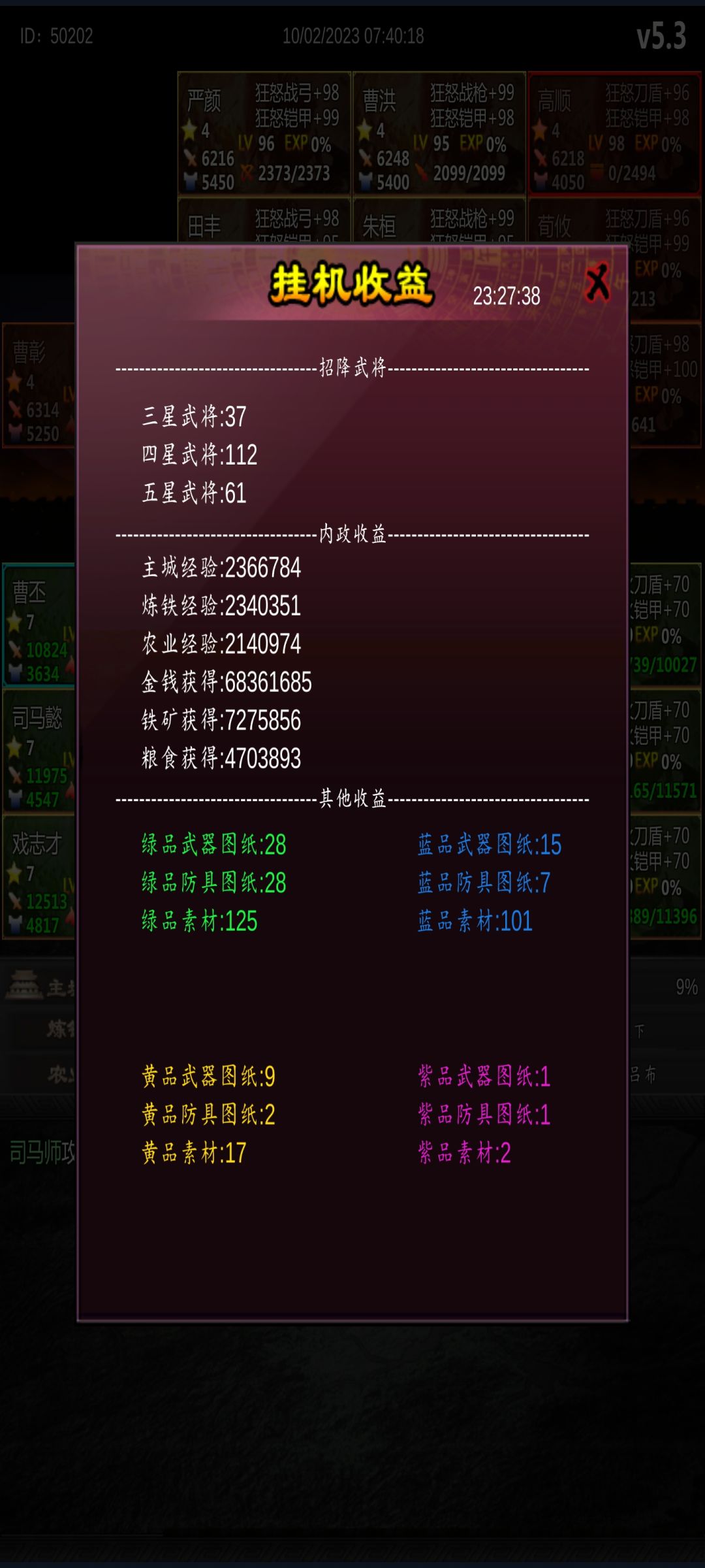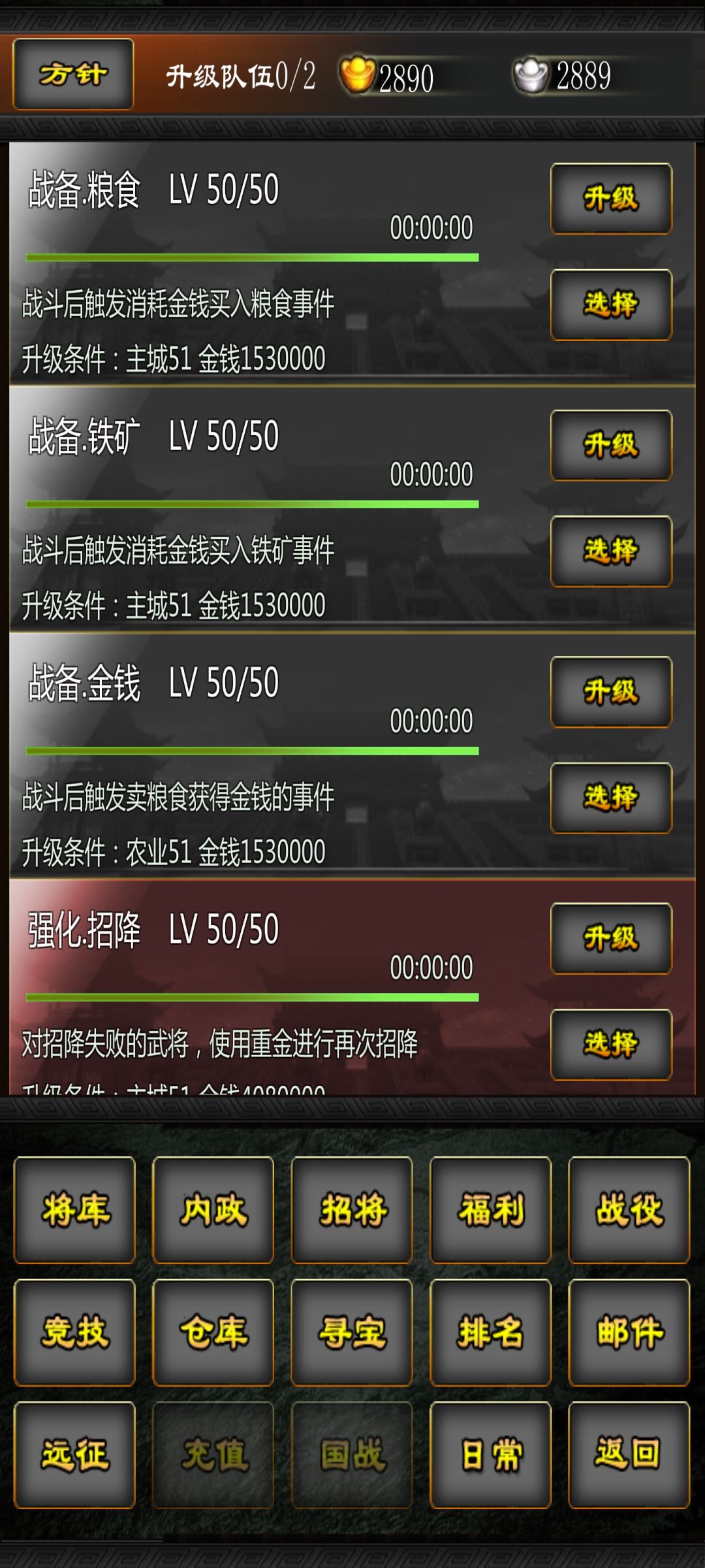 5.2更新了远征内容,现在谈谈以下几点心得:一是资源、要好好规划利用。因为目前远征能稳定获得红素材(红宝、红马卡),所以白银、资源留着秒寻访获取藏宝图去远征应该是最优解。二是远征的武将属性只影响招募,感觉可以使用高魅力武将远征,至于战力好像影响不大。而且远征耗费资源较多需要自己考量一下怎么存资源,在寻访和远征之间做好平衡