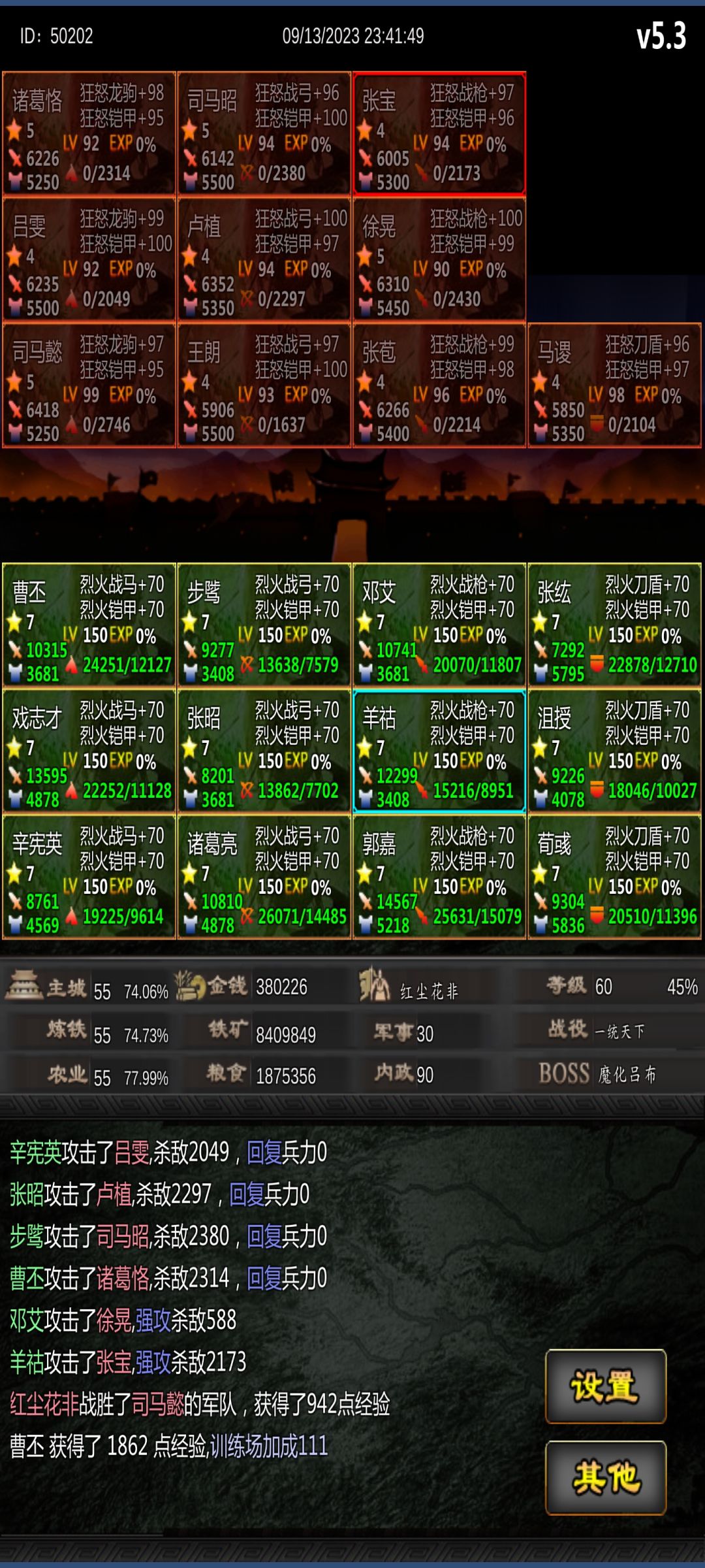 今天刚入坑的三国战线100%,感觉还不错,闲着无聊统计了下每个关卡能抓的将和具体数据,后面有新人入坑也可以看看,目前推完黄3,正在练级,后续会继续更新。 黄1 ①张梁(枪) 武74 智50 政52 统70 魅75 ②程远志(枪) 武69 智21 政24 统71 魅32 ③武安国(骑) 武80 智30 政30 统66 魅37 ④张曼成(骑) 武73 智45 政40 统72 魅40 ⑤马元义(骑) 武