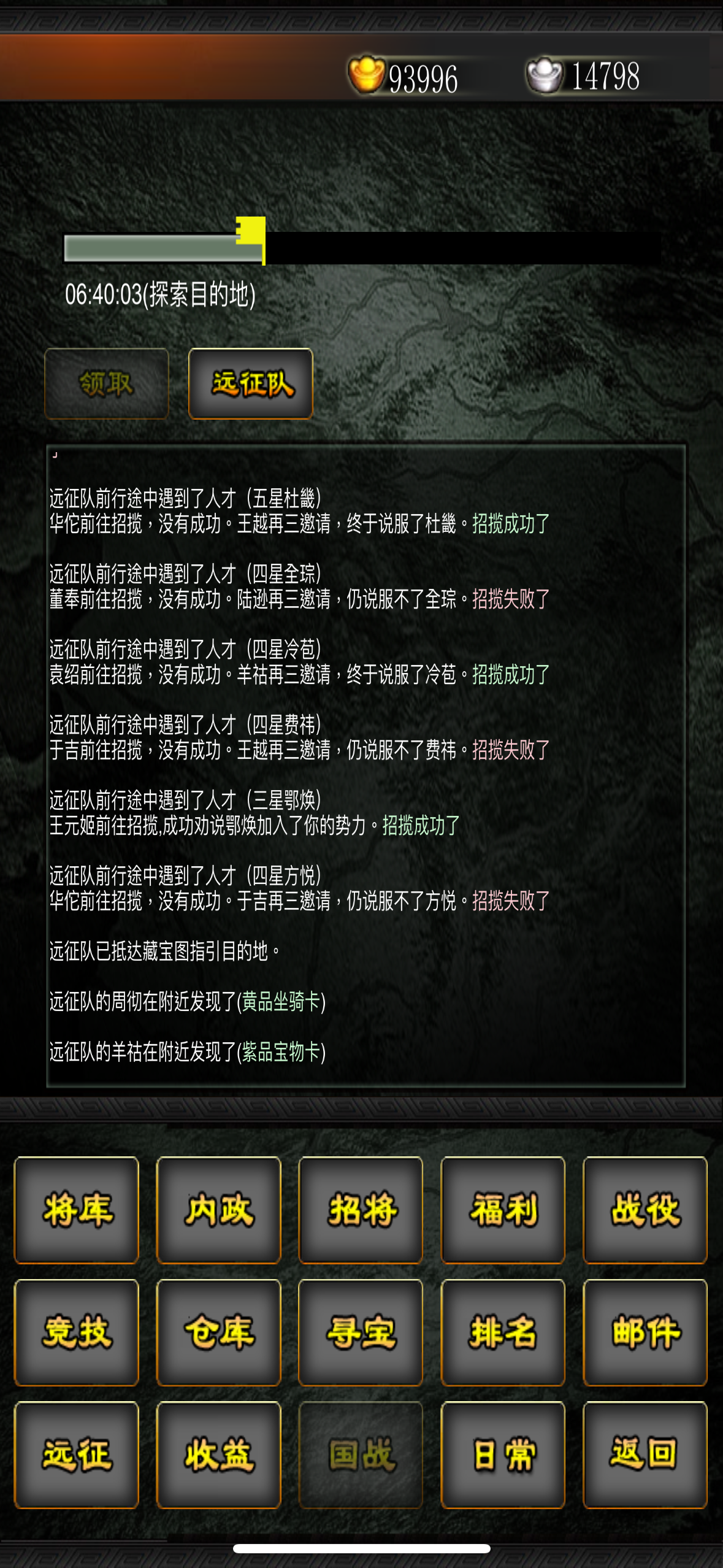 按攻略的路线,先刷贾诩,卖贾诩,换随机五星卡,攒到三个或者四个五星魅力将之后去江夏抓大乔。 大乔抓六张,如果没炸成功合成六星乔,就回头再去刷贾诩。 我这里分享的是:贾诩刷得腻歪了,可以去兖州地图刷陈宫。陈宫掉率也是很高的,副产品还有掉率较低一点的郭嘉,也是好卡。郭嘉早期开荒可能刷不起来,但陈宫是很容易七星的。我的第一个七星打手就这么来的。后面的汉中地图刷蓝色装备,以及更后面的一统图刷黄色装备,都用