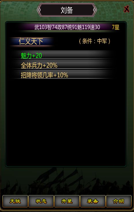 本文讲的比较详细,如果懒得看这么多字,可以收藏后玩到哪个阶段看那个部分一.刷开局: 主要就是两个步骤,第一是刷初始武将,有一个刘备就足够(后面会解释为什么是刘备),剩下的看你心情;第二是刷主公属性,也就是军事和内政属性(二者之和的最大值是120)建议是80军事40内政(军事90,内政30也可以用,哪个先来用哪个,不过有时间刷的话还是80,40,二者差距真不大)前期会比较舒服(大概解释一下这个有
