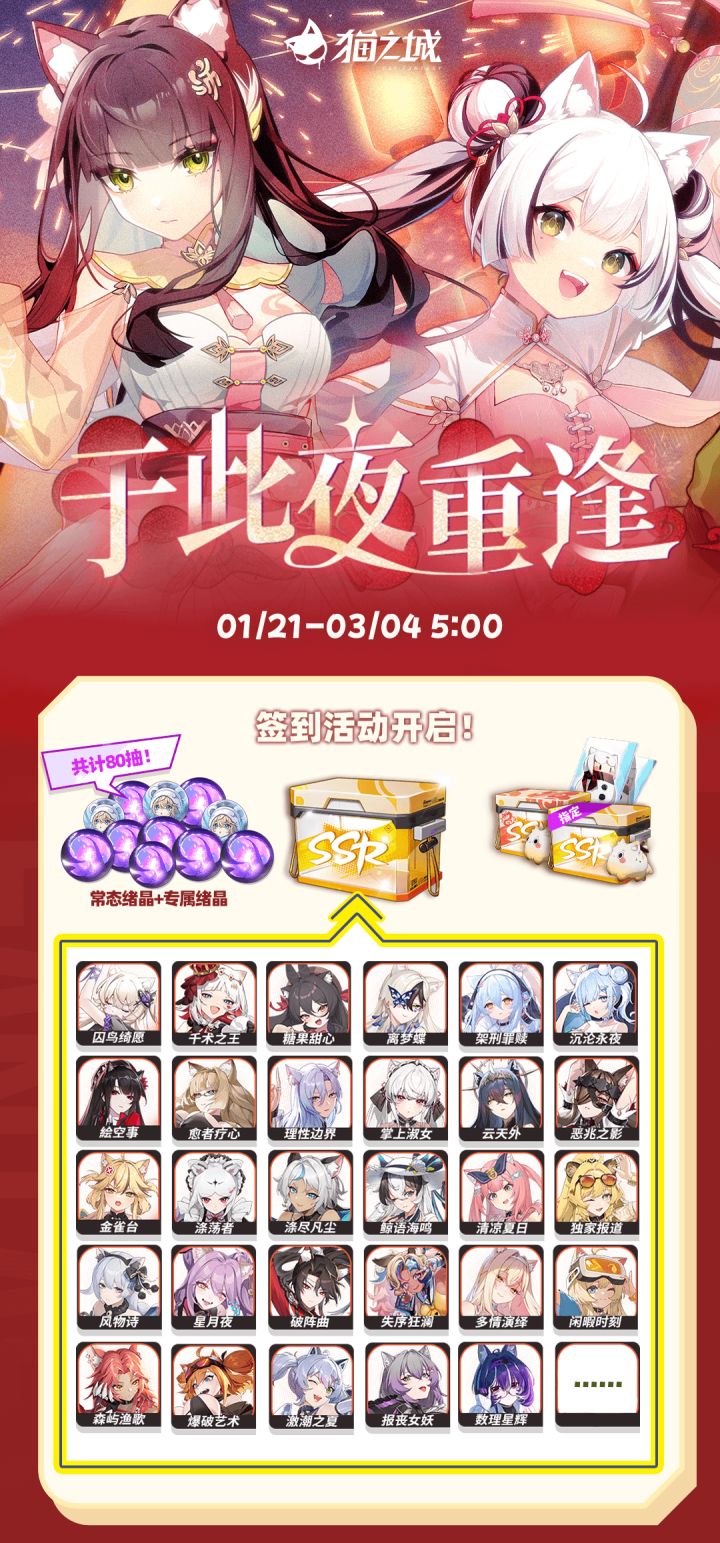 调查官大人,登录领猫娘啦!节庆副本活动、免费福利、限定召唤…… 丰富内容即将上线!活动内容已为各位调查官整理好,点击转发保存,就能防止错过活动啦~※当情报与游戏内不同时,请以游戏内容为准哦~